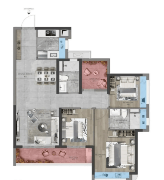 项目位于广州市第三中轴焦点的国际科技立异城,210㎡五居户型,周边交通收集完美,